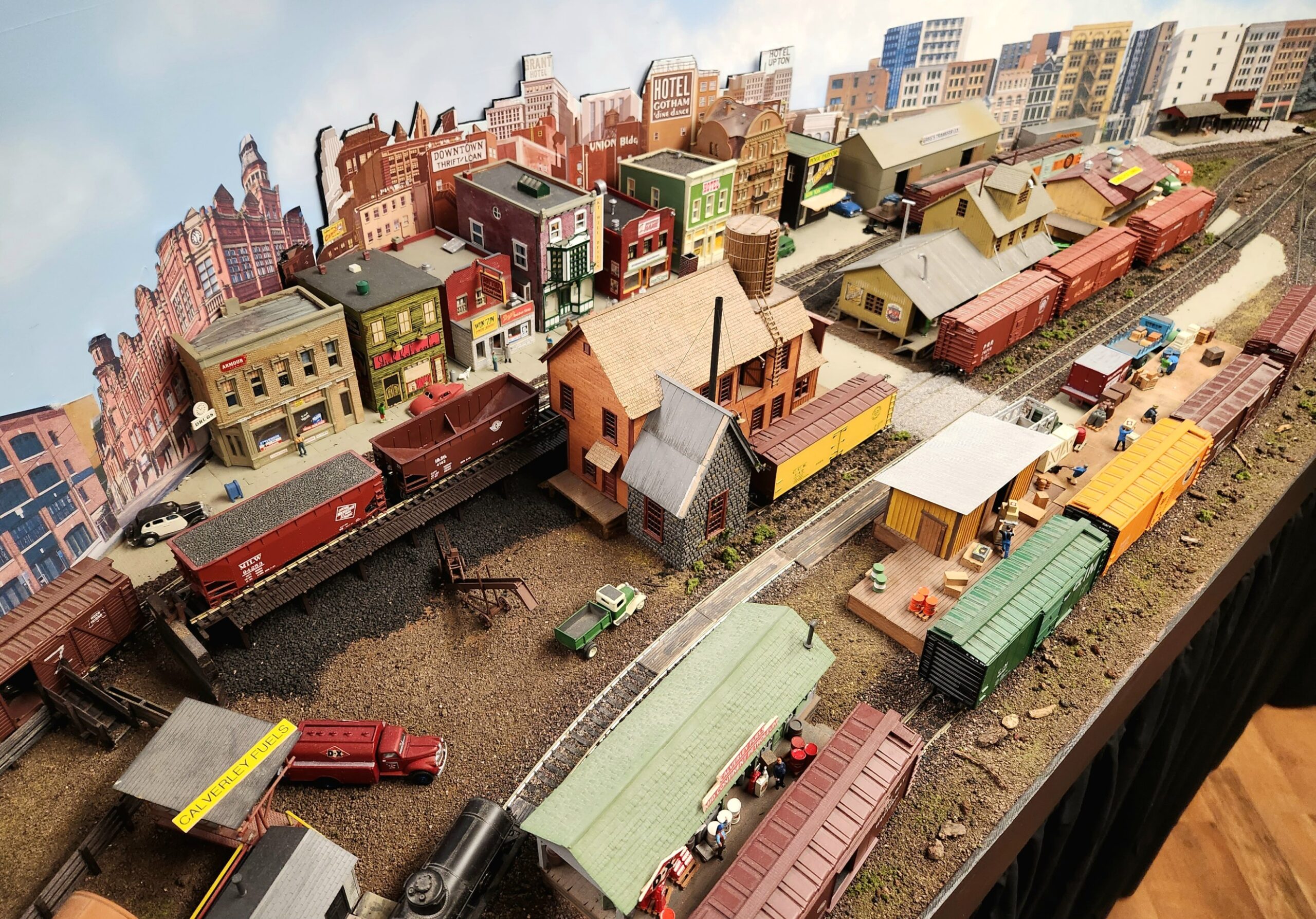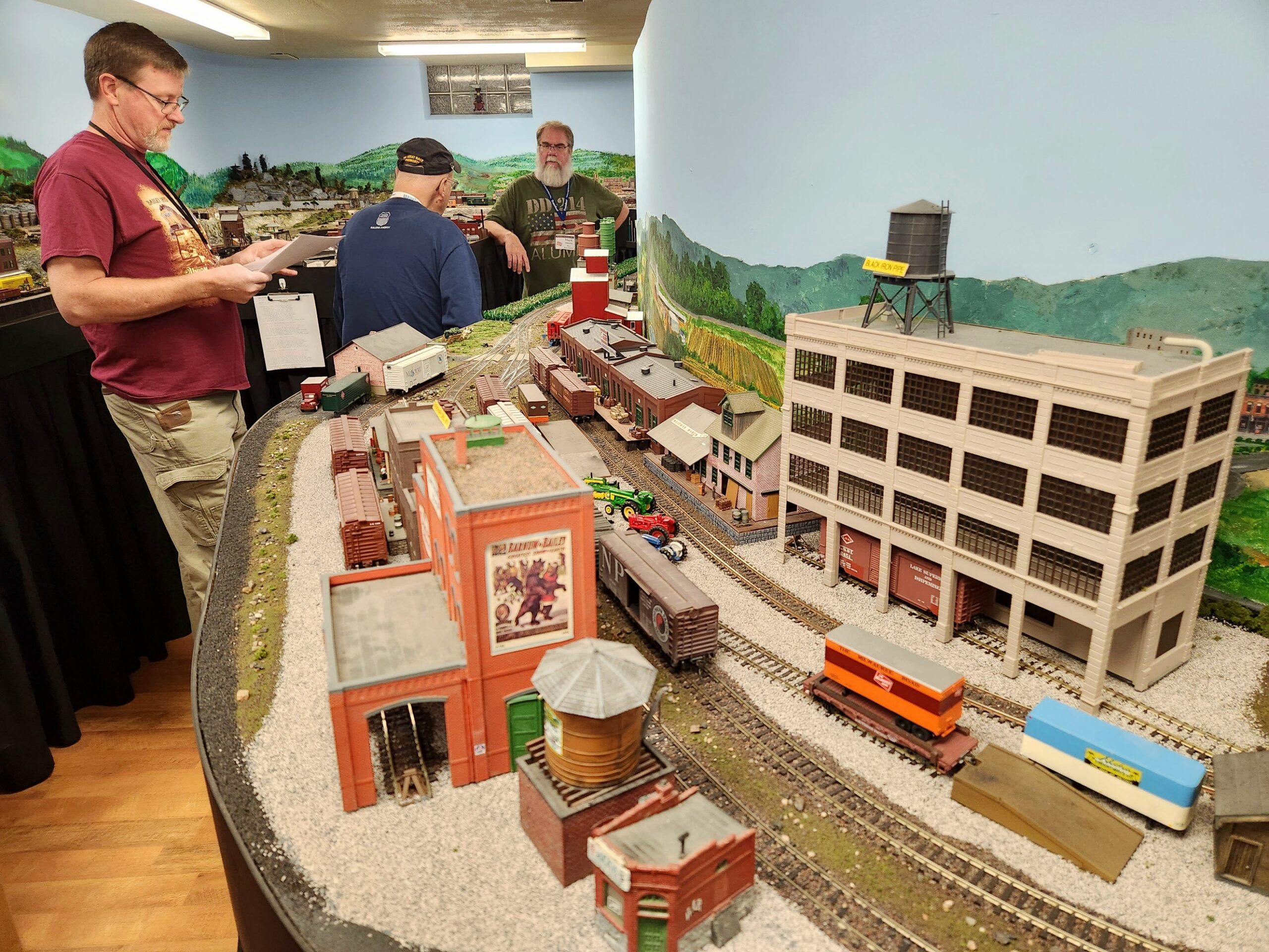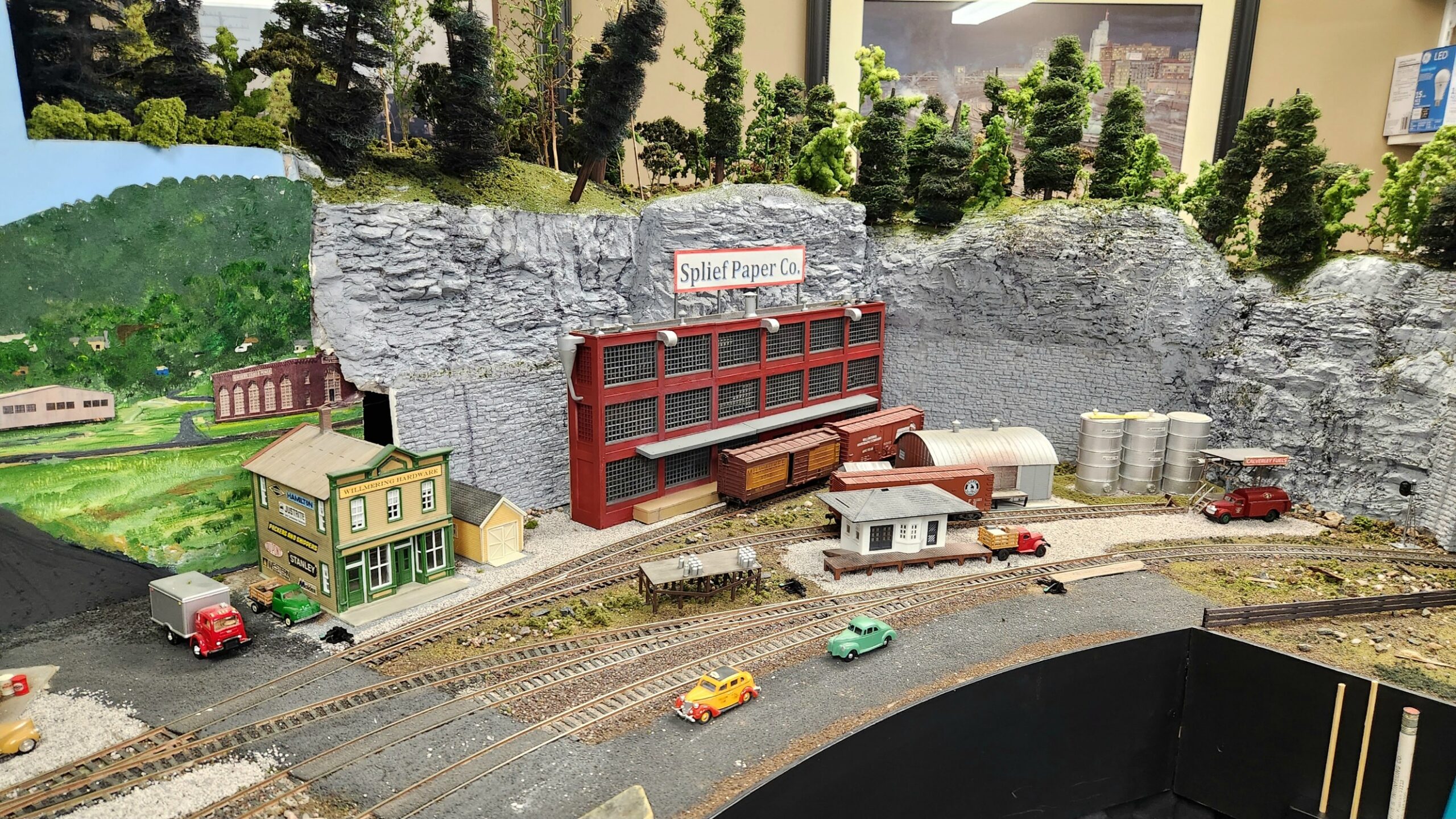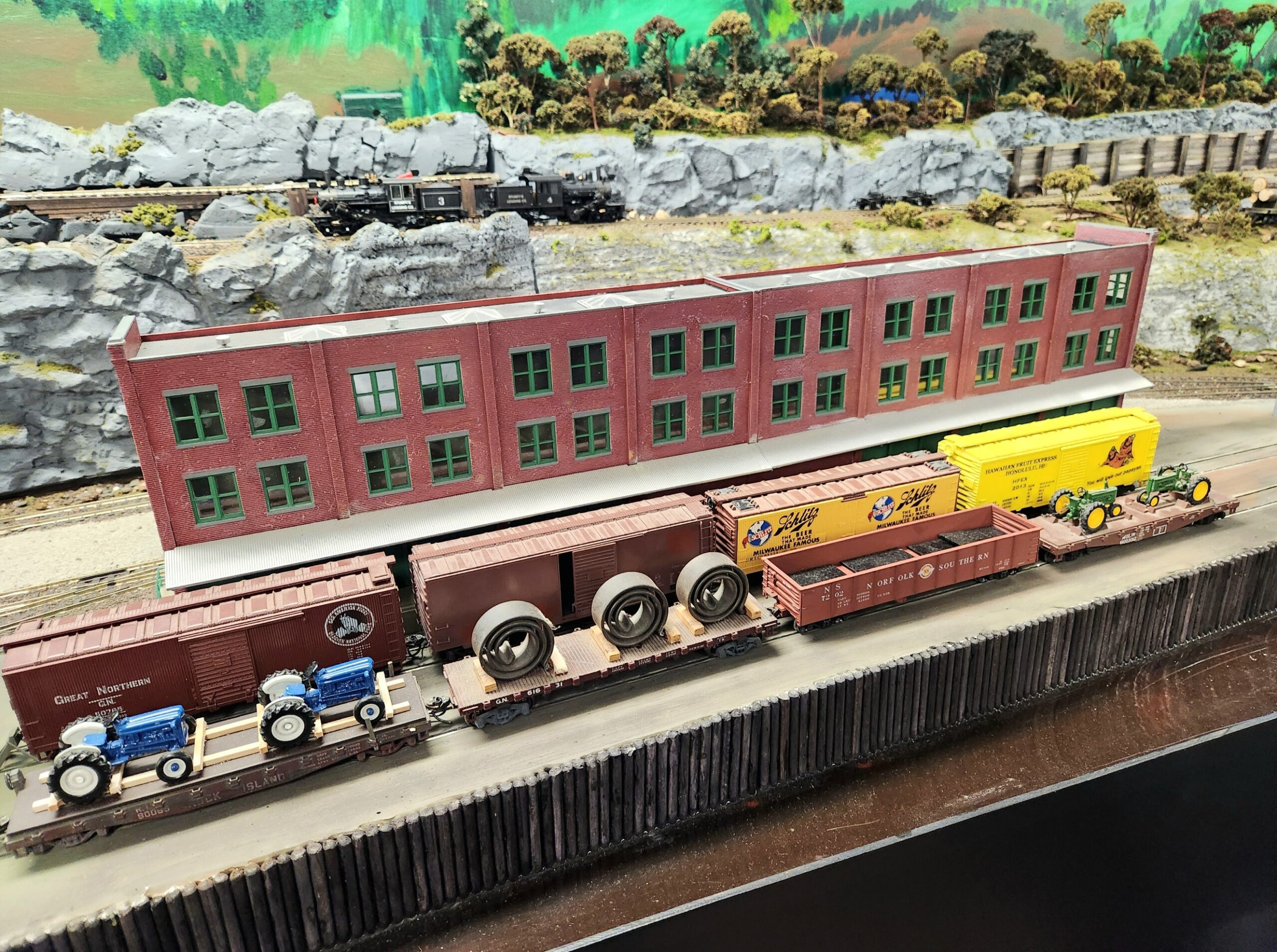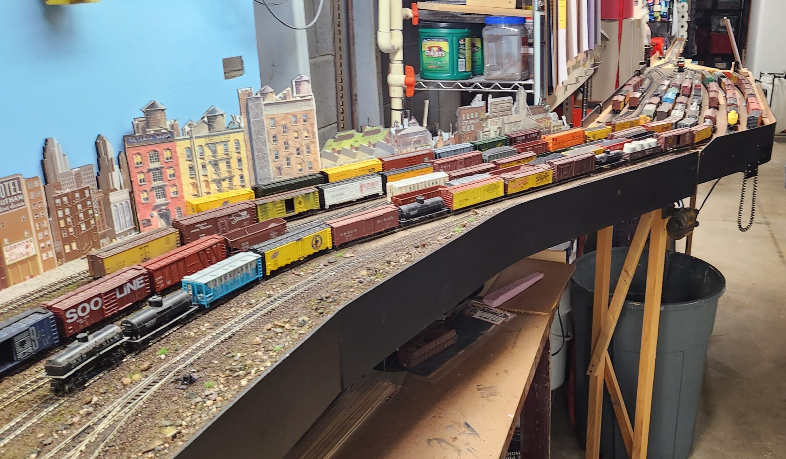 Mark’s operating scheme is very unique. Rock Harbor resides on a large island too far from the mainland for a bridge connection. To connect to the outside world, all rail traffic must come inbound and outbound by rail barge or float. Fun concept that works well, so much so, that my upcoming layout build will feature an Erie RR barge operation that actually happened on the North Branch of the Chicago River in Chicago.