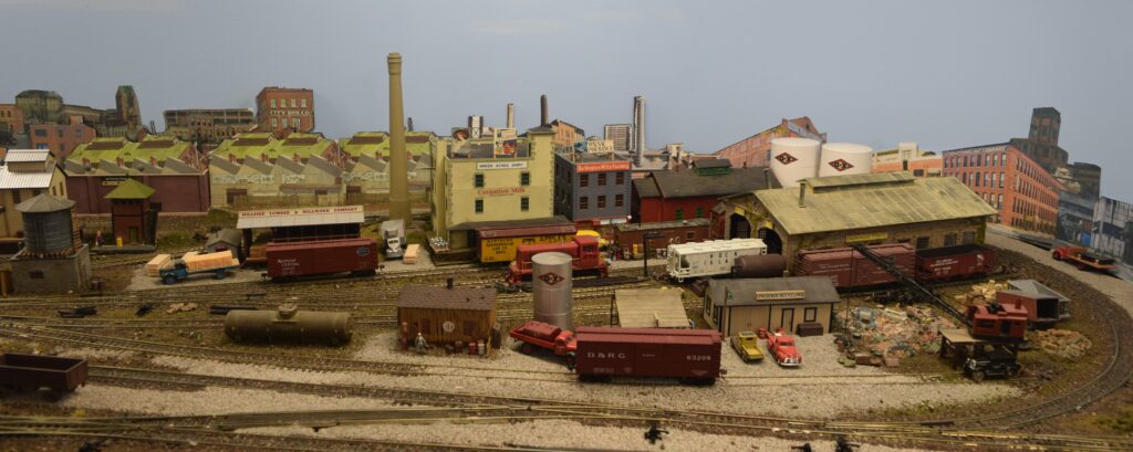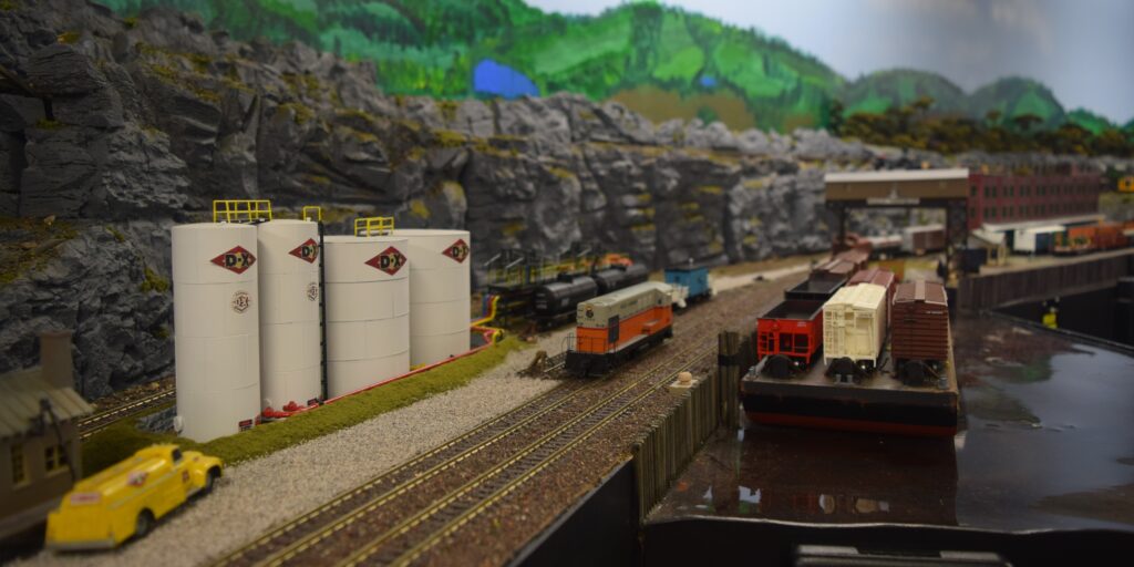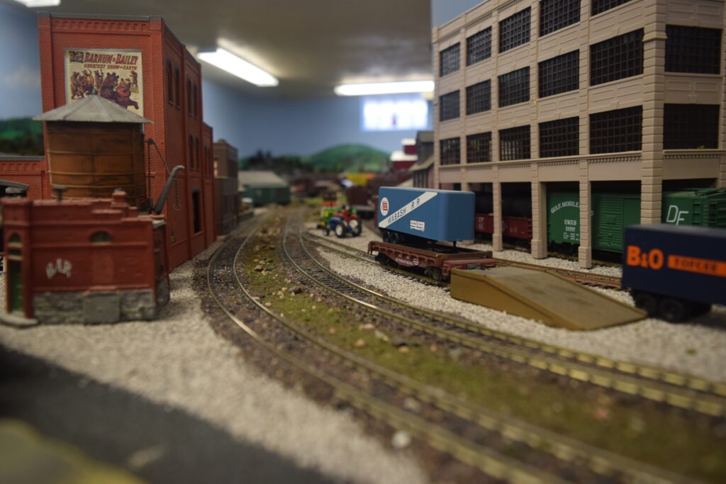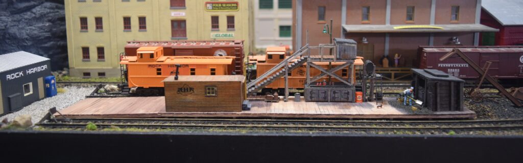 Most of the Class A roads of the 1950’s share access to the mainland yard of the RHTC. At this yard, all other railroads would drop off or pick-up cars. The RHTC has a switch engine here that will sort cars and load/unload the floats.